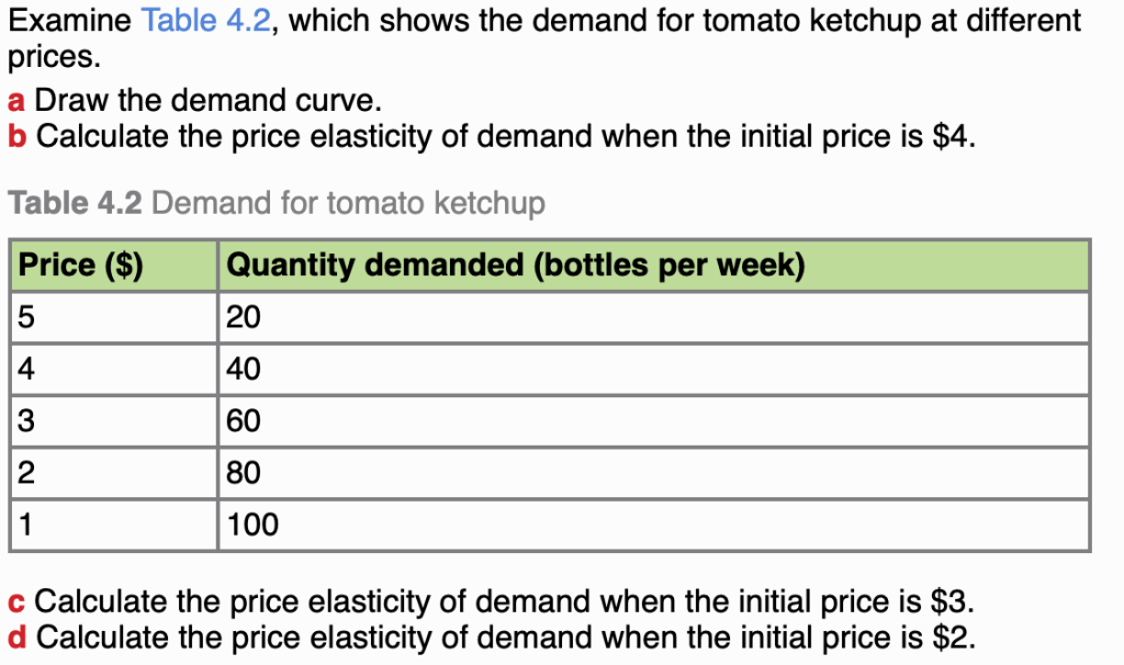 But if we look further down the curve, we see that at a price of 10c a drop in price by 1c causes an increase of 2 in quantity demanded. At this point the elasticity is (2/80) ÷ (-1/10) = -0.25, and so the demand is now price inelastic.