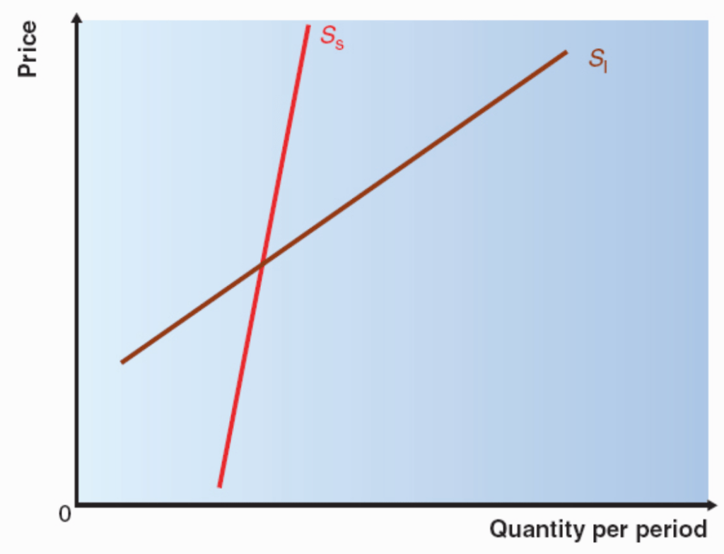 Over the long term supply tends to become more elastic (as factories can be built etc.), as illustrated below: