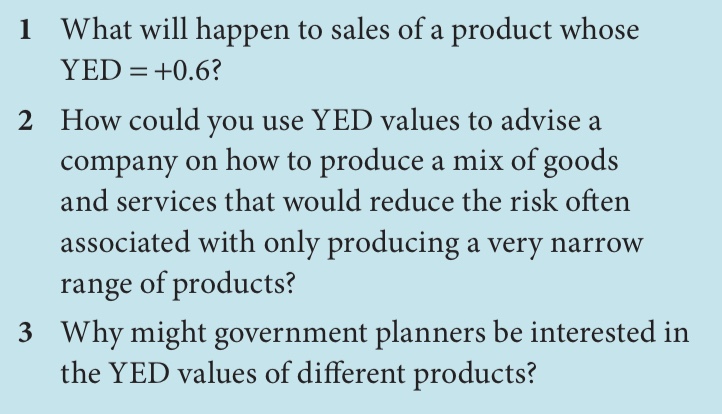 Unlike with PED, YED can be positive or negative. For normal goods it will be positive, whereas for inferior goods it will be negative.