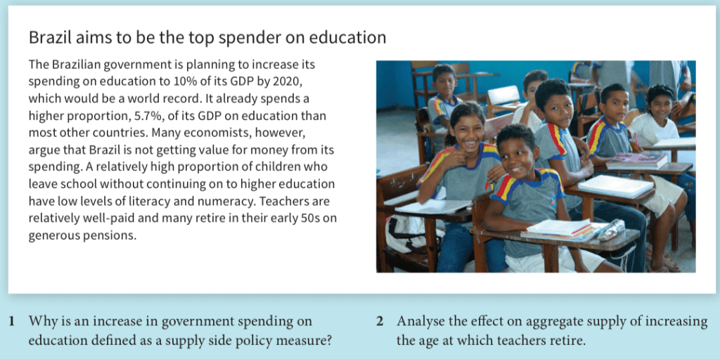 - Supply-side policy – Measures intended to have an impact on aggregate supply and the potential capacity of the economy to produce. e.g. encouraging investment in physical and human capital.