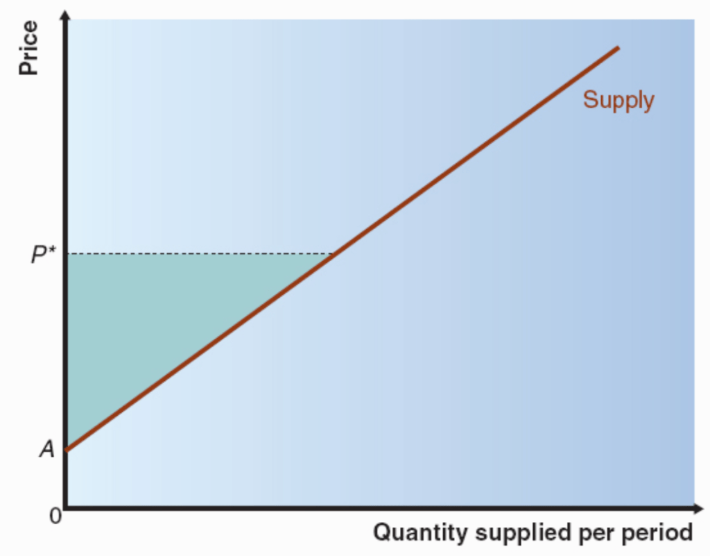 Producer surplus is the difference between the price received by firms for a good or service and the price at which they would have been prepared to supply that good or service. As with demand, with supply we can consider the supply curve as indicating marginal cost, the cost of producing an additional unit of output.