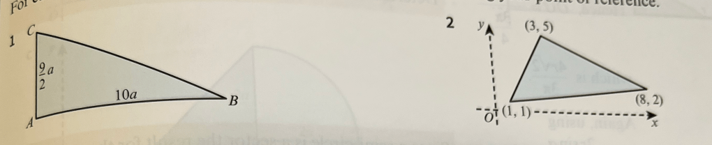 Find the centre of mass of each of the below triangles, stating your point of reference: