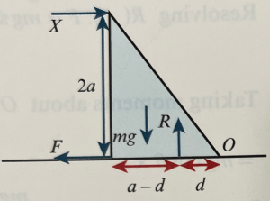 Taking moments about O gives X x 4a + R x d = mg x a