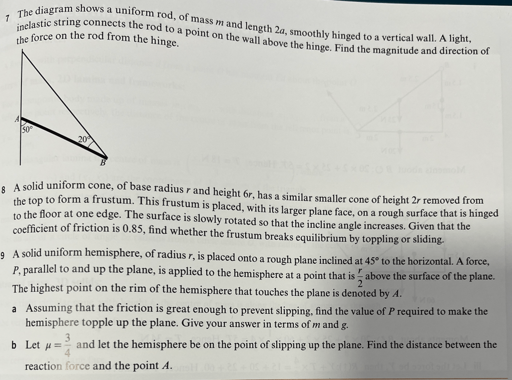 By resolving forces, and taking moments at an appropriate point, find a range of values of μ so that the rod does slip down.