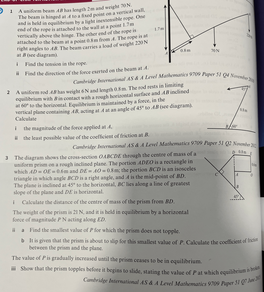 In each of the diagrams below, a light rod is pivoted at a fixed point, A and we want to find the unknown values such that the rod will have a zero moment about A: