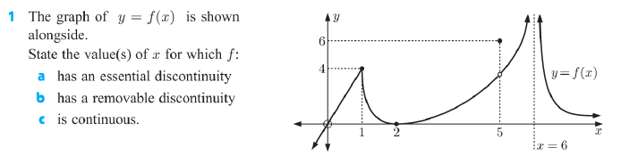 If f is not continuous at x=a, we say either that f is discontinous at x = a, or that f has a discontinuity at x = a.