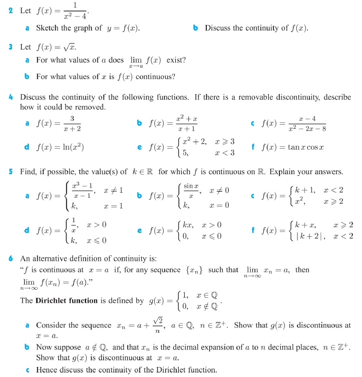 Discuss the continuity of the following functions. If there is a removable discontinuity, describe how it could be removed: