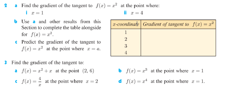 Find the gradient of the tangent to f(x) = x2 at the point (2,4)