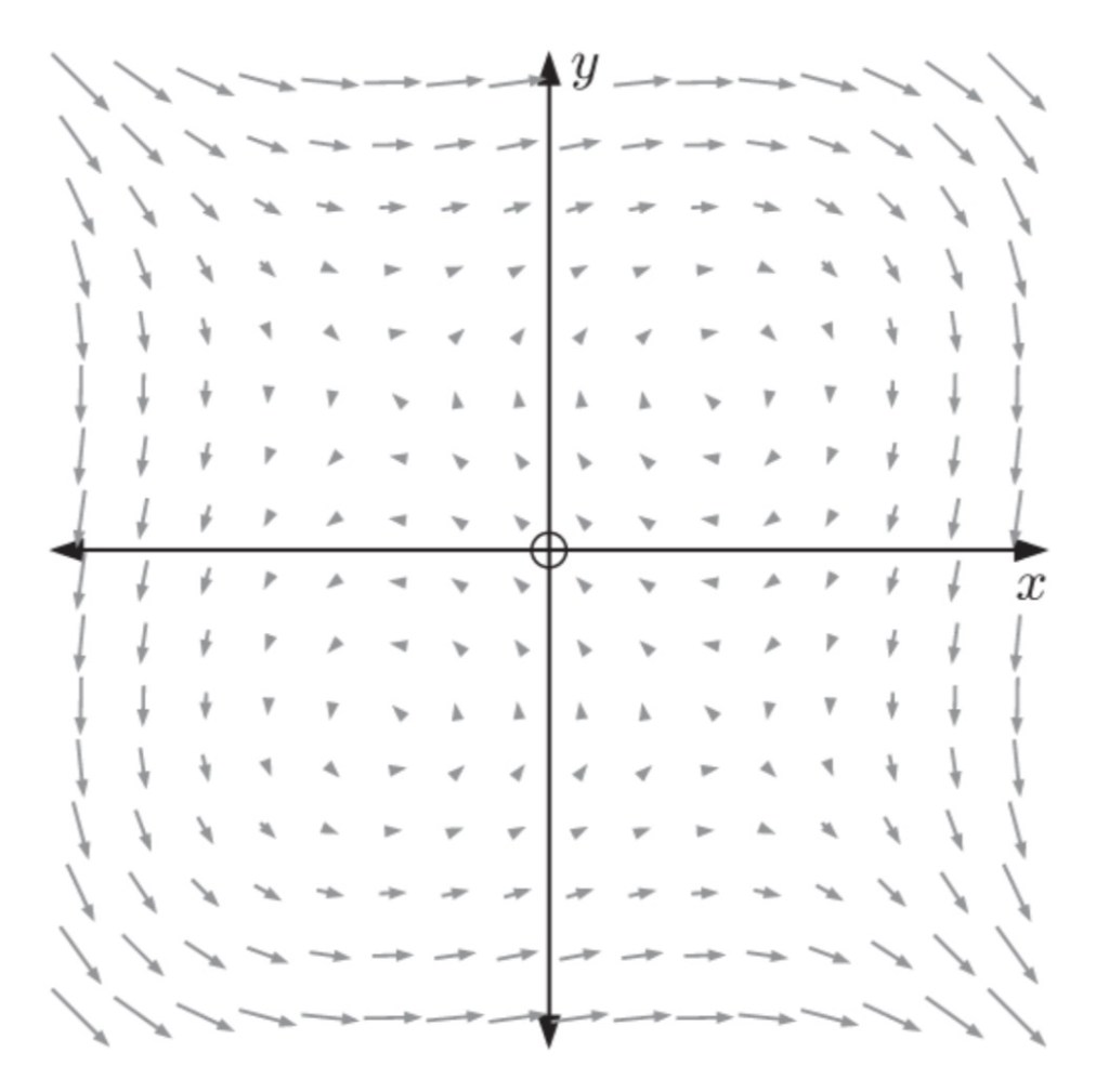 3. For each of the following phase portraits, locate and describe the equilibrium point (drawing some trajectories may help with this):