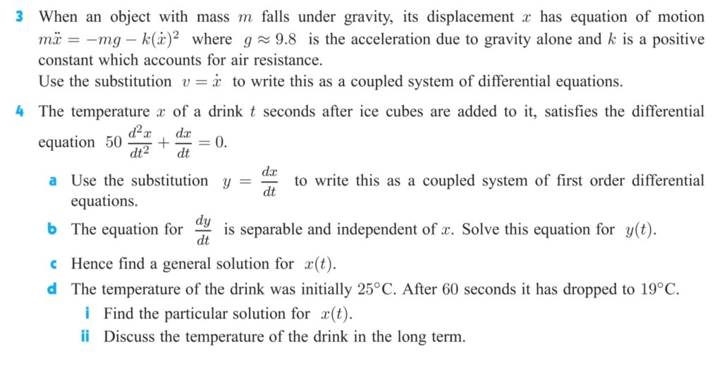 Any DE of the form an be rewritten as a system of coupled first order linear DEs, allowing us to use second order linear DEs, as shown in the followign example.