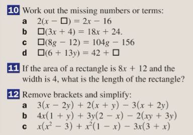 Whenever we multiply a term by an expression in brackets, we must multiply it by every single term in the brackets. So in 3(x+4) the 3 must be multiplied by the x and by the 4. How many terms will we have once we have simplified this?