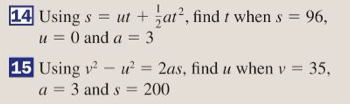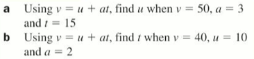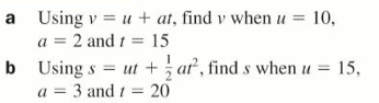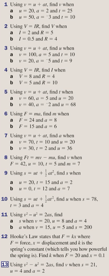 A formula is an equation with a special meaning (e.g. there is a formula for velocity, which is v=u+at). If we know the value of all but one of the unknowns in a formula, we can substitute them into the formula to find the remaining unknown value.