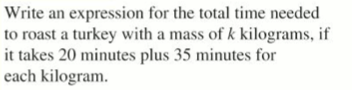 To make an expression from a word problem, we need to decide what “thing” in the word problem we want to assign a letter to, and then use the information given to create an associated algebraic expression
