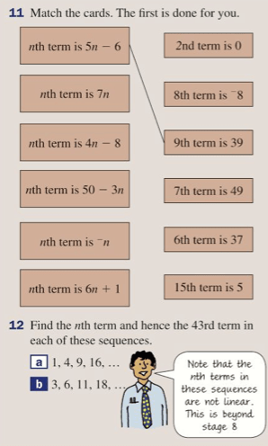 One of the most important things to identify with a sequence that follows a specific rule is the nth term. This is a formula a rule that will let us find any term of the sequence (e.g. the 52nd term or the 2000th term). So if the sequence was 2,4,6,8,10,… the n’th term would simply be 2n (i.e. two times n).