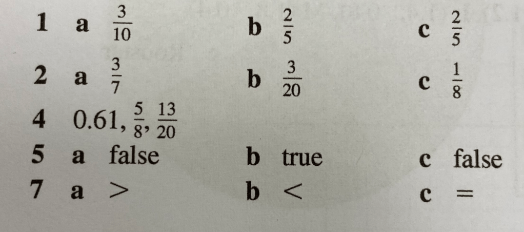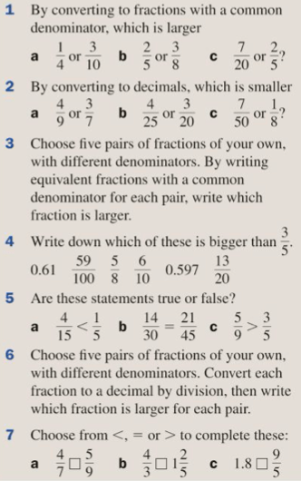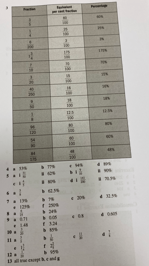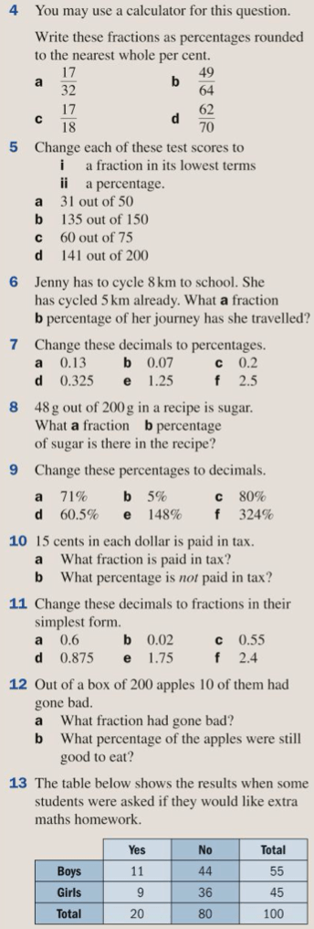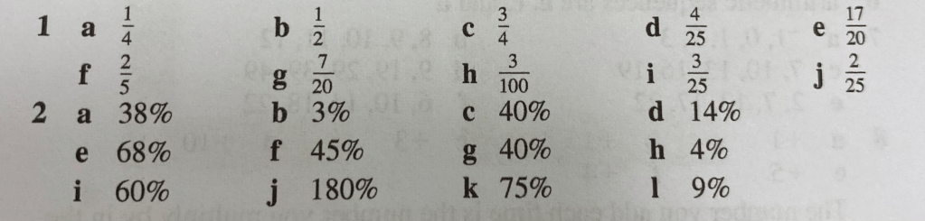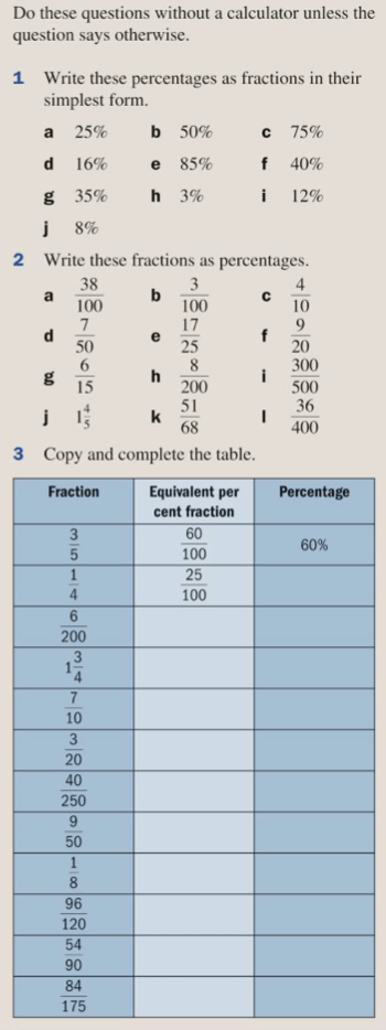 Equivalent Fractions, Percentages and Decimals