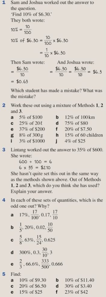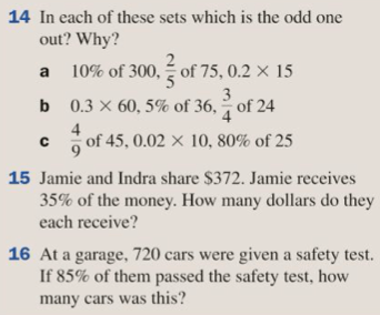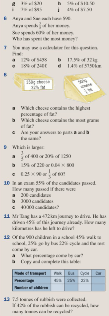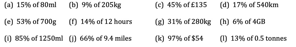 When we are asked to find a percentage (or a fraction or a decimal amount) of a quantity, we can always interpret the word “of” as meaning we must multiply.