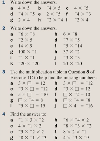 Let’s complete question 8 of exercise 1C on page 11 and then all of exercise 1E on pages 12 and 13: