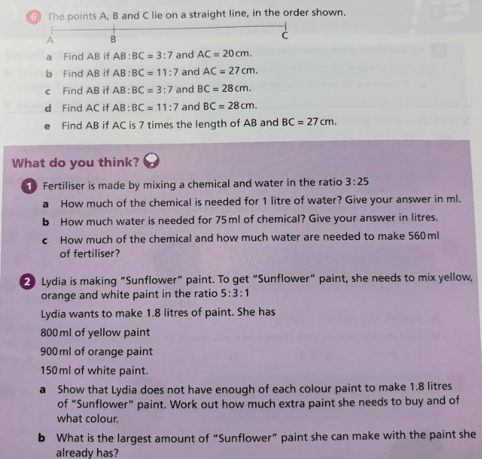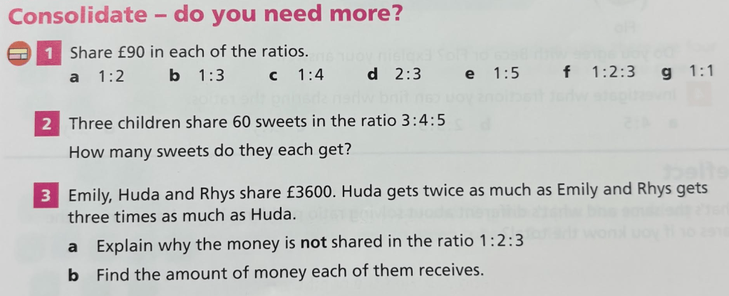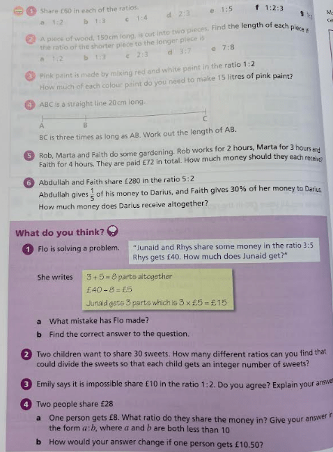 We can also use ratios for a different type of question (sometimes called a “proportion” question), where we know a total amount and want to share it out in a given ratio.
