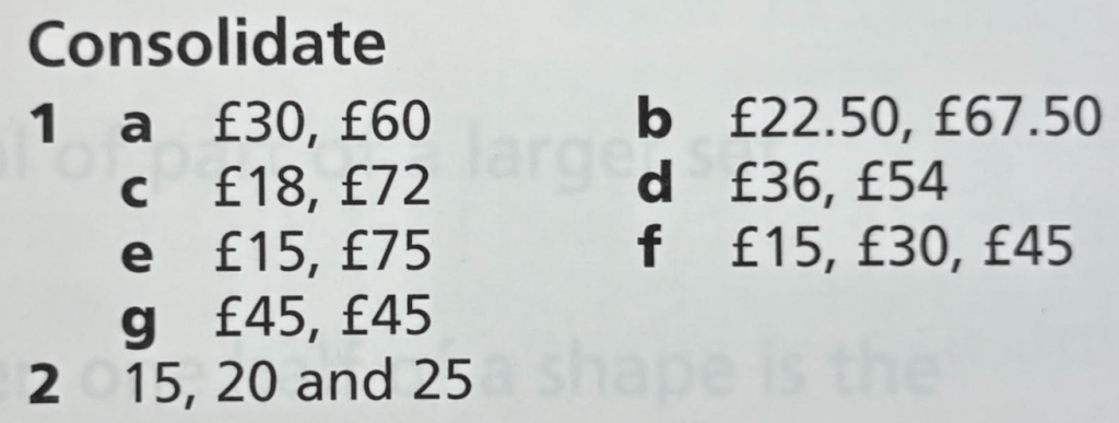 Here we still need first to find what “1 part” represents, but to find it we need to sum the two sides of the ratio and divide by this number.