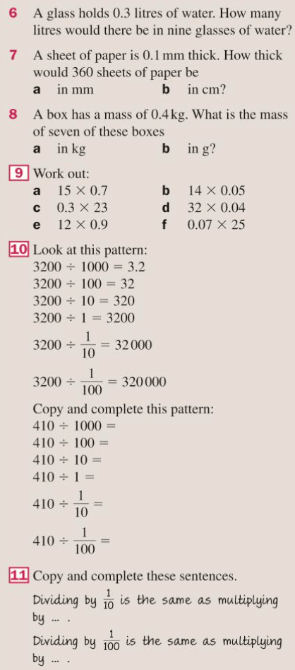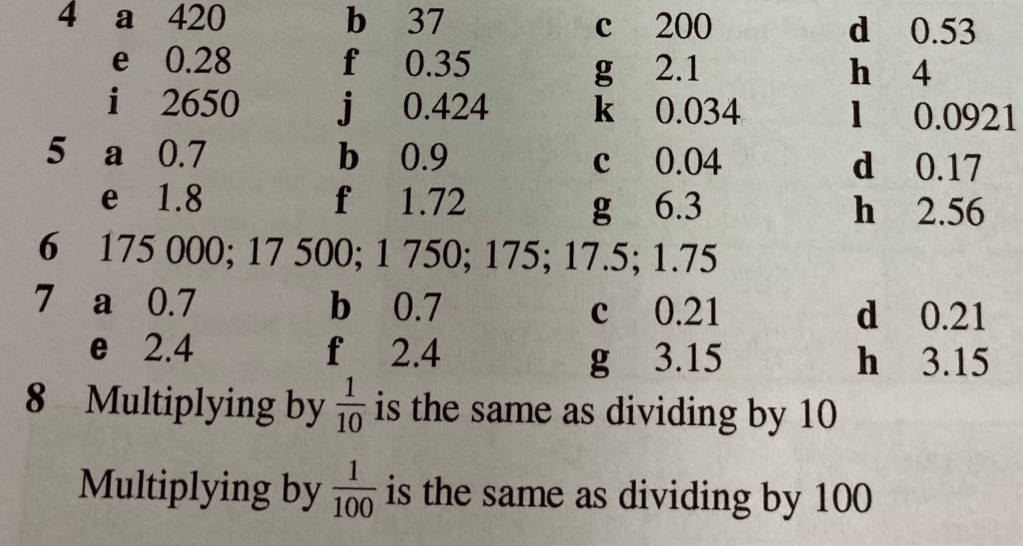 Our number system is set up so that multiplying and dividing by 10 (or by 100, or 1000 etc.) is particularly easy. The numbers just have to be moved the correct number of places to the left or to the right.