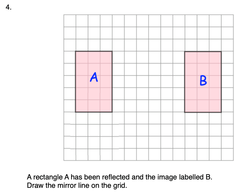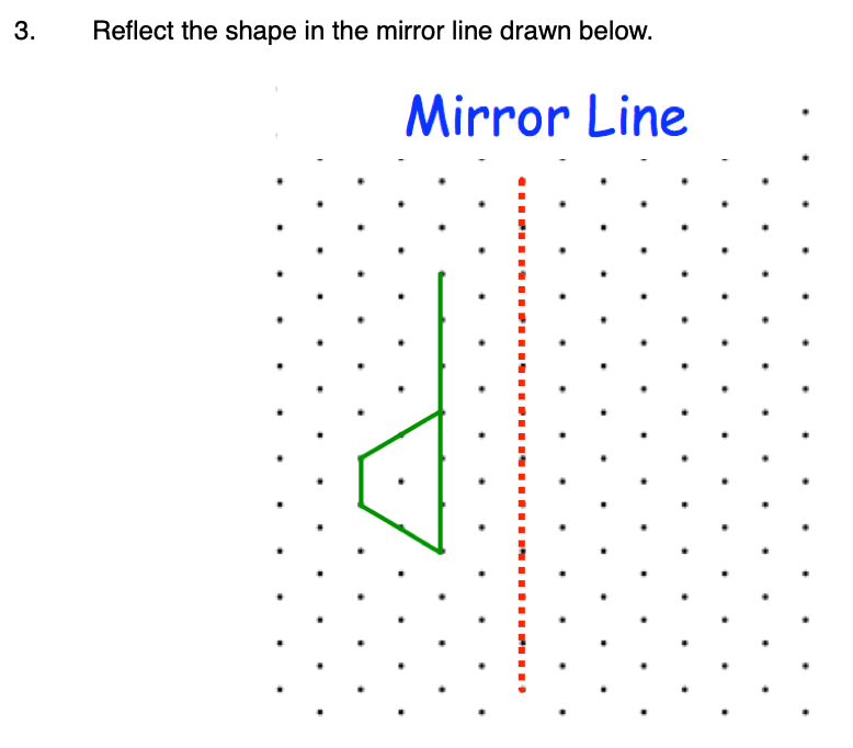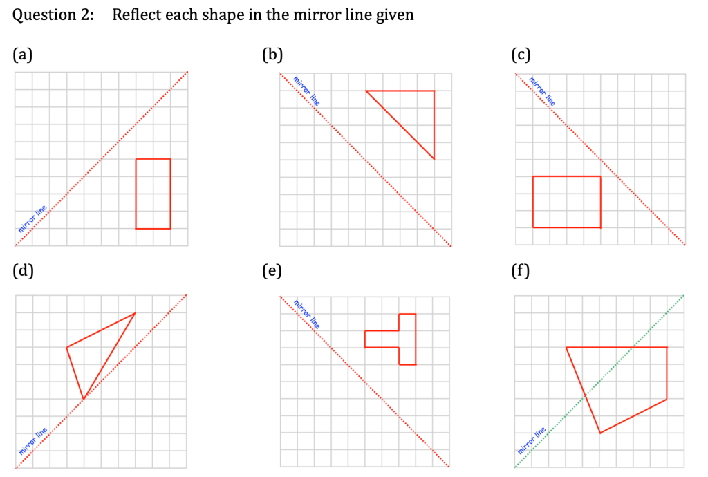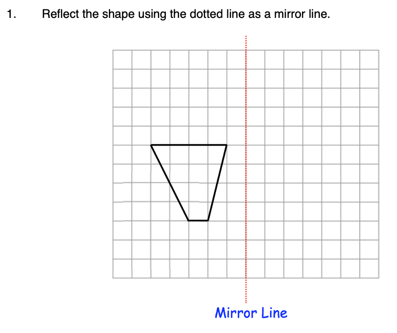 To reflect a shape in a mirror line, we need to take every vertex of the shape to the same distance on the other side of the mirror line (let’s see what this means). If we then join up all of our new vertices we will have the image of our original shape after a reflection. Be careful – the mirror line won’t always be horizontal or vertical! (Although it will always be straight during the iGCSE course)!