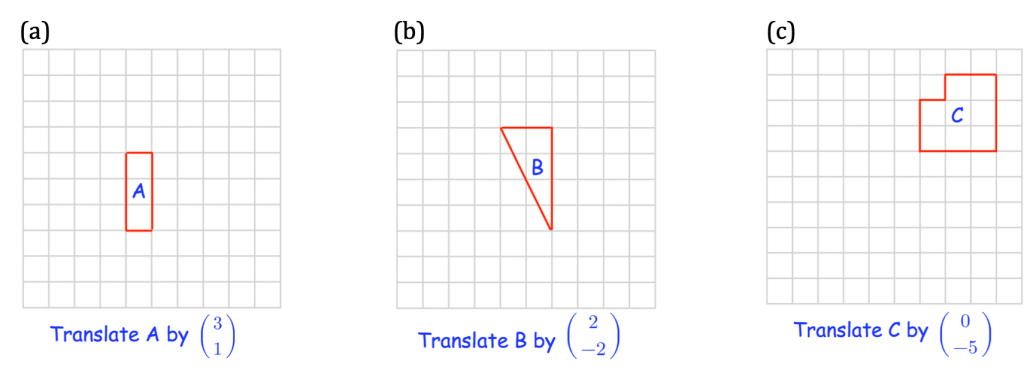 Let’s try identifying the translation vectors for a point that has moved and marking the image point following a translation ourselves, and then let’s try the examples below where we are dealing with a whole shape: