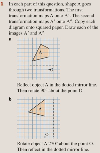 Now let’s try our last exercise in the topic of geometric transformations, which is questions 2 to 5 of exercise 15E on pages 243 to 244 of the textbook: