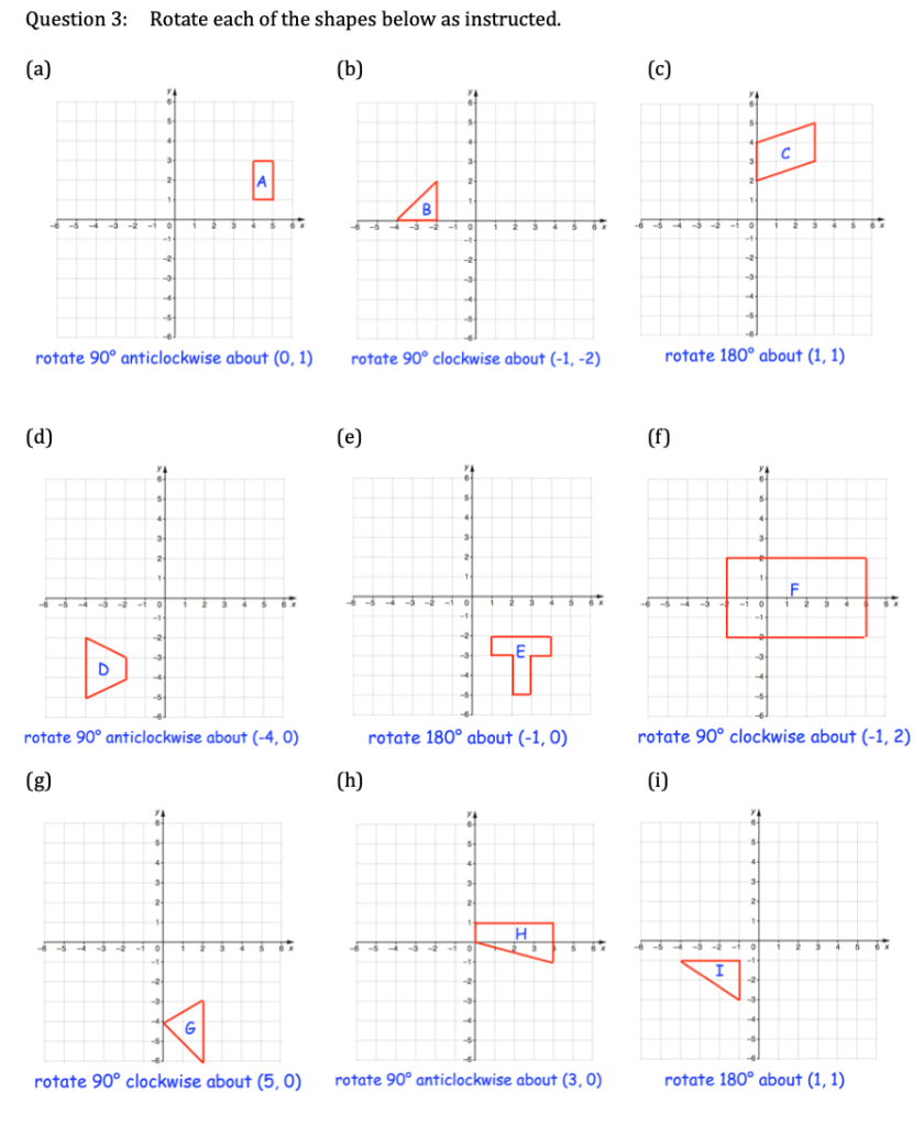 Questions will often want you to identify which transformation has taken place without telling you what kind of transformation you are looking for. They may also ask you to do several transformations one after another.