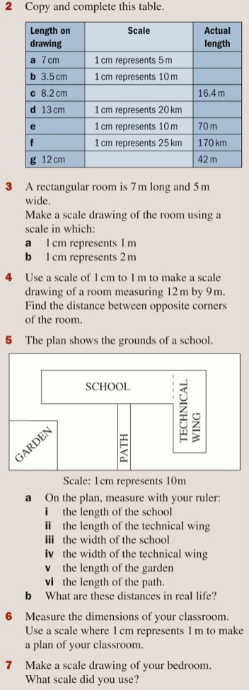 As studying scale drawings is a very practical matter, it is best “learned by doing”. To do the following exercise you will need a ruler and your textbook.