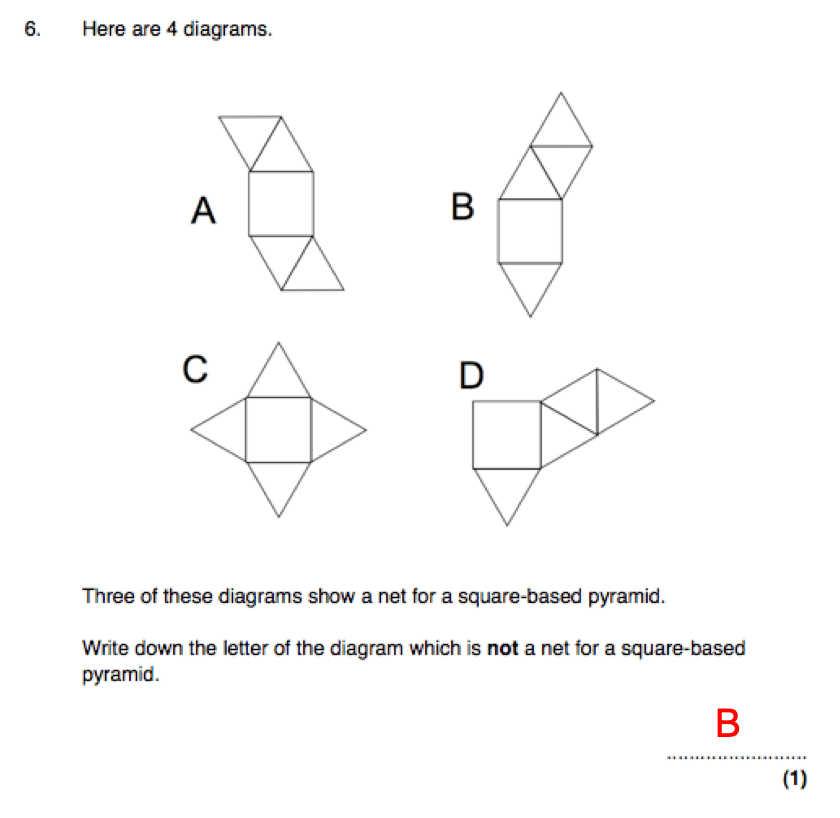 When we look at a 3D shape, we should be able to imagine what its net would look like. And when we see a net we should be able to identify what shape that net would “fold up” to make. Let’s try a few with the teacher and then have a go at the questions below (not from a textbook)