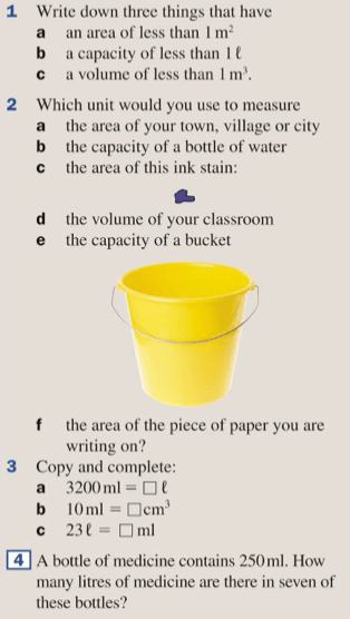 We’ve talked about length and mass. Let’s think now about area, volume and capacity.