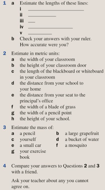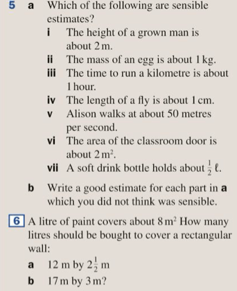 Let’s try estimating some lengths, some areas and some volumes of things in the classroom.