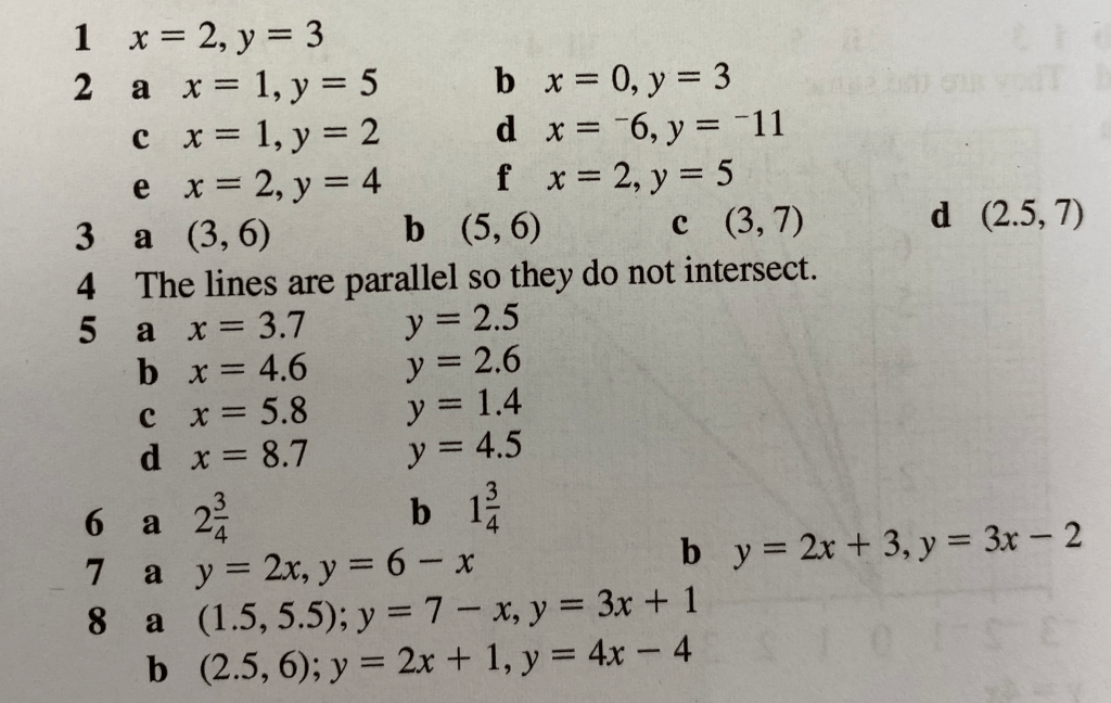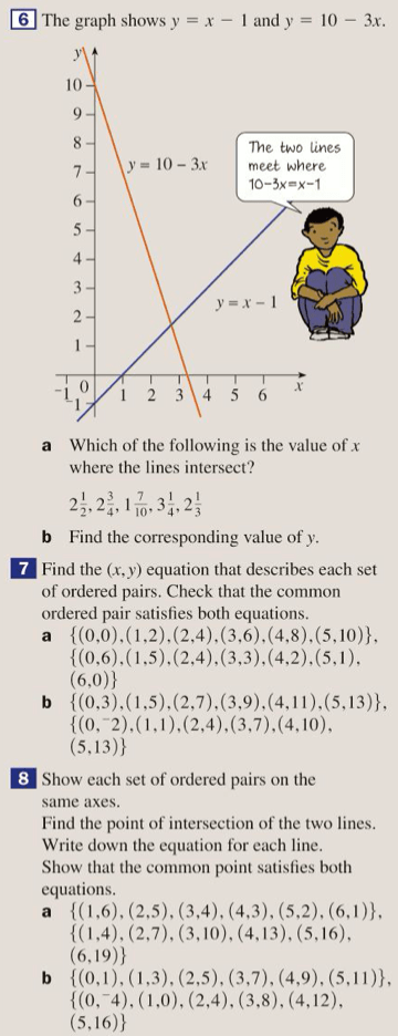 Geometrically, the solution to a pair of simultaneous equations is the coordinates of the intersection point.