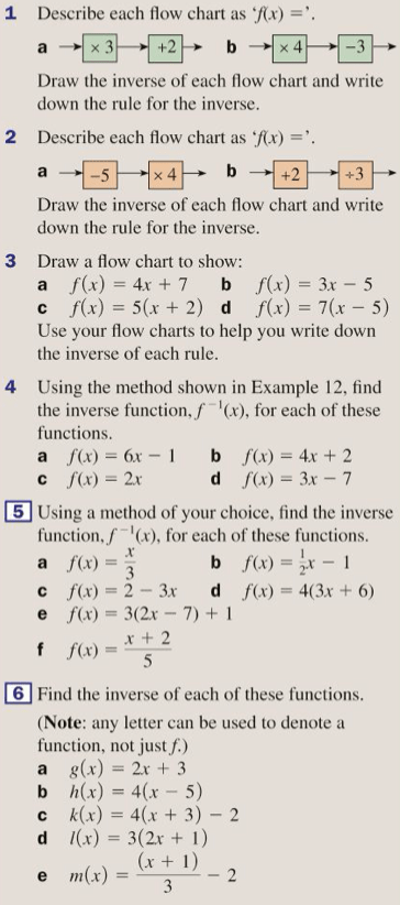 Another, generally quicker, method is to follow a special algorithm. We switch the variables of the equation and then make the other variable into the subject of the equation. We will demonstrate this below in “example 12”