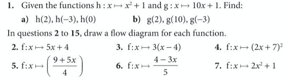 For instance, the function f(x)=2x+1 takes the value 1 and turns it into 3. It takes the value 2 and turns it into 5. What does it do to the value 3?