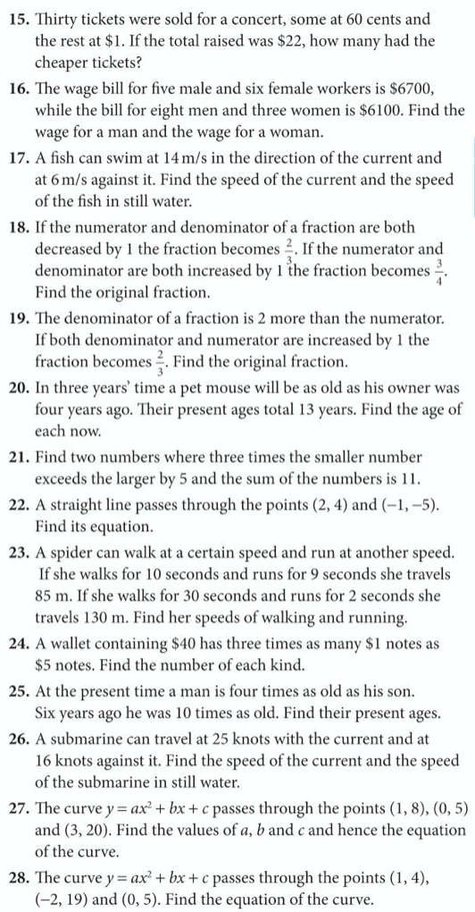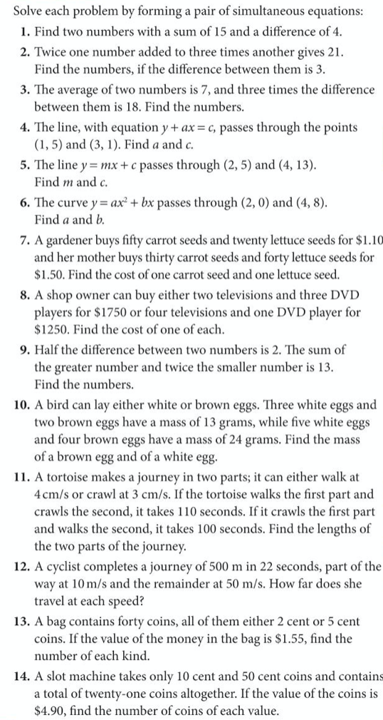 Below are some further questions to practice applying our skills with simultaneous equations from exercise 22 on pages 82 to 84 of the extended textbook: