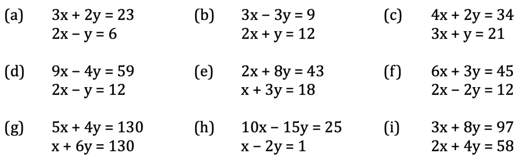 Now let’s practice this method of solving simultaneous equations in exercise 6 on page 230 of the core textbook: