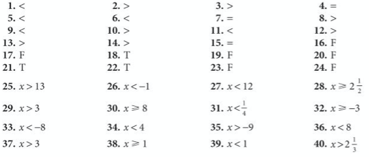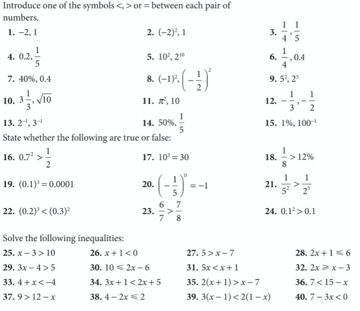 For each of the questions below, express the solution as an inequality (i.e. using crocodiles), and then draw a number line to represent the solution.