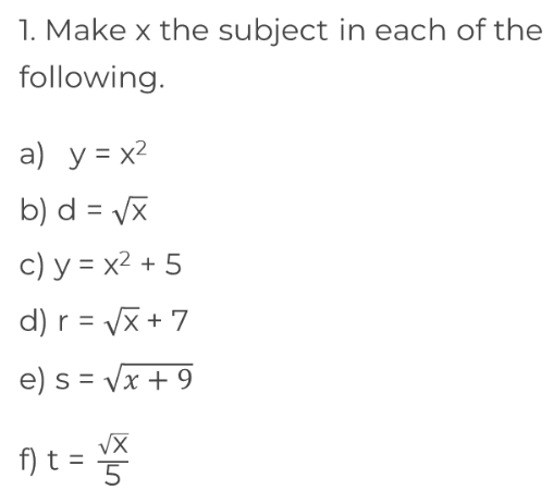 On this set of exercises we introduce the “positive square root” sign. Do you know what the inverse of this sign is?