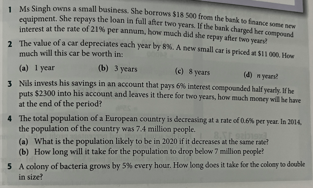 3.) €100 is invested subject to compound interest at a rate of 8% per annum. Find the value of the investment after a period of 3 years.