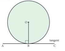 A tangent to a circle is a line that just touches the circle without crossing it. If we draw a line from the point where the tangent touches the circle to the centre of the circle, this line will make a right angle with the tangent.