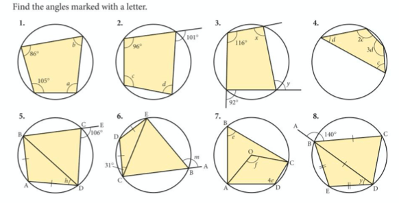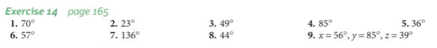 Let’s use this information to find the size of the angles marked with letters in exercise 11 on pages 159 and 160 of the extended textbook: