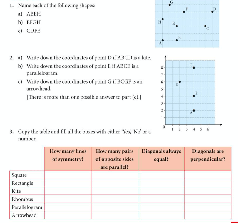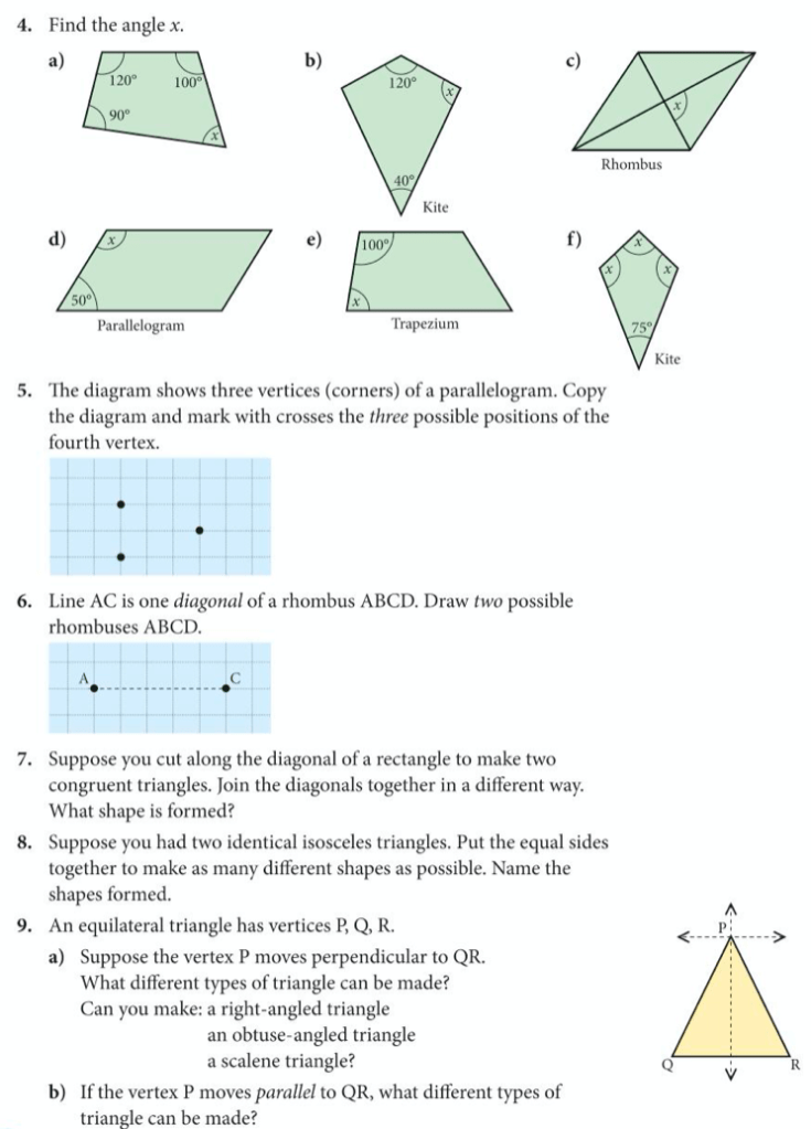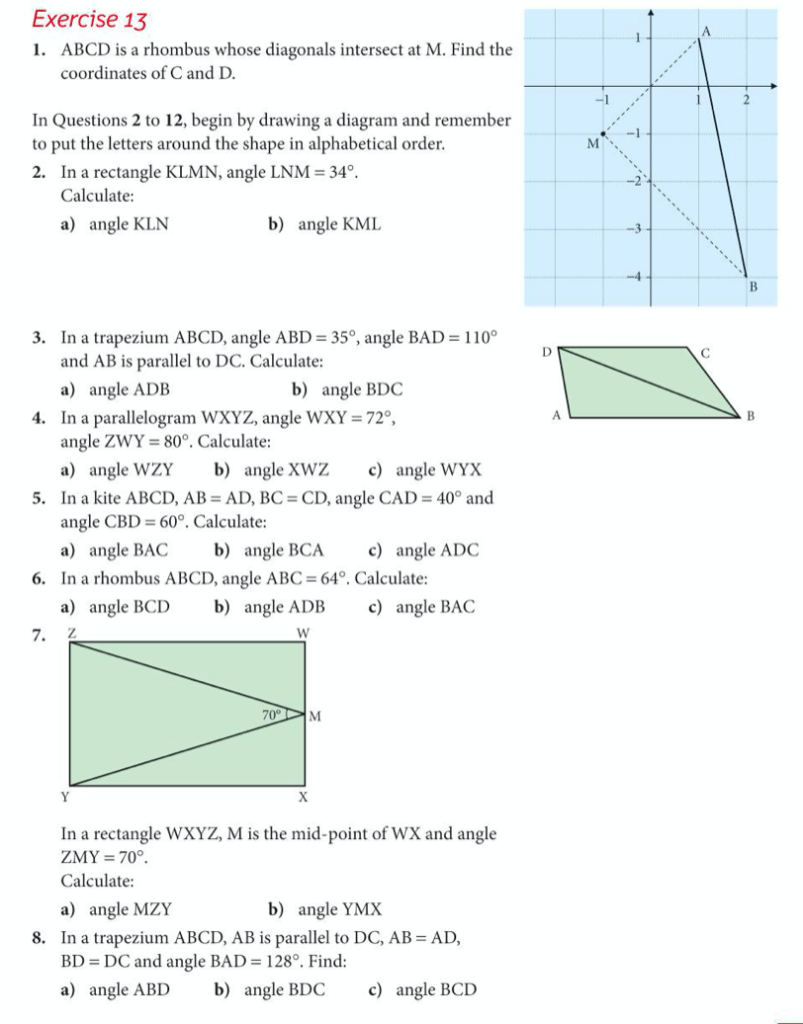Let’s use what we know about coordinates and angles to try to complete the below exercises about quadrilaterals (exercises 12 and 13 on pages 199 to 202 of the core textbook)