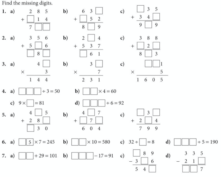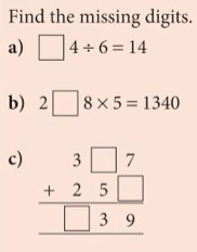 A good way to develop our thinking about inverse operations is by filling in missing numbers as in the exercise below.