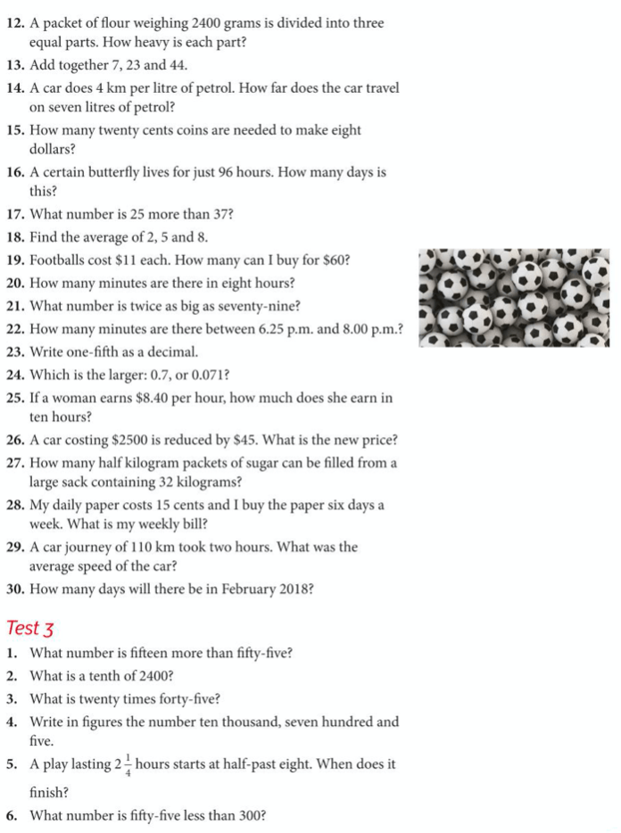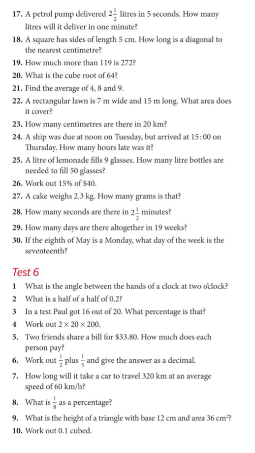 It is important to be able to do simple calculations fast and accurately. To help with this, below are 7 tests. Each test should be done within a time limit of 30 minutes and just the answer should be written down without any “working out” notes made. Let’s see how you do! (the tests are from pages 265 to 274 of the textbook):