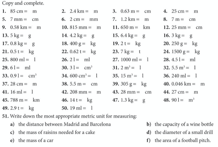 Be especially careful with square units or cube units – the conversion numbers can be larger than you think, because, for instance, although a centimetre is only made up of 10 millimetres, a square centimetre is made up of 100 square millimetres. This is easier to see on a drawing.