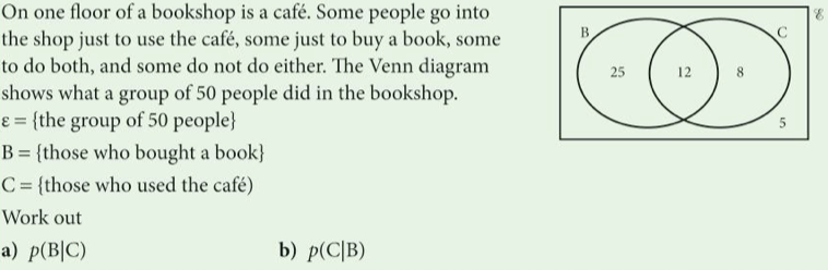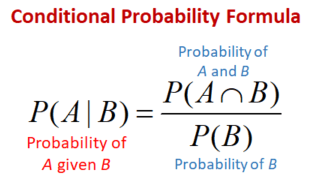 The probability that one event occurs given that another event has occurred is expressed by the following formula:
