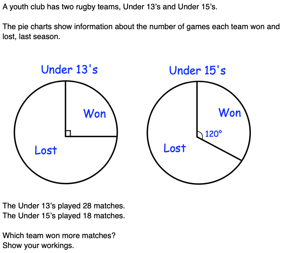 Let’s try some questions involving pie charts that are similar to iGCSE examination questions: