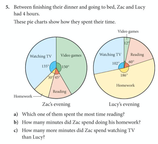 Now have a go on your own at the following from exercise 3 and exercise 4 on pages 143 and 144 of the core textbook (some questions have been removed that required you to draw pie charts).