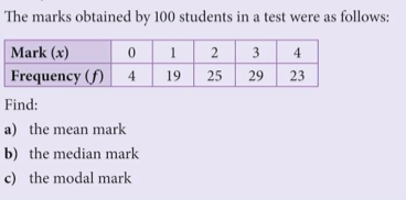 If data is given in the form of a frequency table, we can calculate the mean average using the formula mean = Σfx / Σf, where Σf means the sum of all the frequencies, and Σfx means the sum of the products of the values with the frequencies. Below is an example of this process: